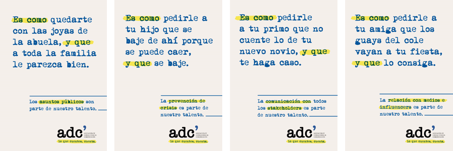 Para reivindicar y explicar la labor que ejerce ADC como patronal que representa los intereses de todas las consultoras de comunicación, la Asociación ha desarrollado una nueva plataforma de comunicación, “Lo que cuentes, cuenta”, que pone en valor tanto a las agencias como al trabajo que éstas realizan para marcas e instituciones.