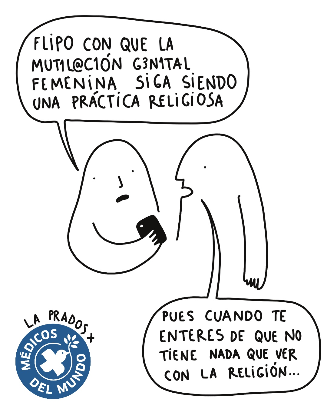 El objetivo de Médicos del Mundo es visibilizar las consecuencias de la mutilación genital femenina, subrayando la importancia de la prevención a través de las mediadoras interculturales. Para ello se ha colaborado con la artista gráfica La Prados, quien ha aportado su estilo único en la creación de una serie de viñetas ilustradas que se difundirán a través de las redes sociales. Dichas viñetas se basan en el concepto “Menos Ablación, Más Hablación” y abordan la problemática de la mutilación de manera accesible, directa y visualmente atractiva con la intención de trasladar un tema complejo de forma sencilla.
